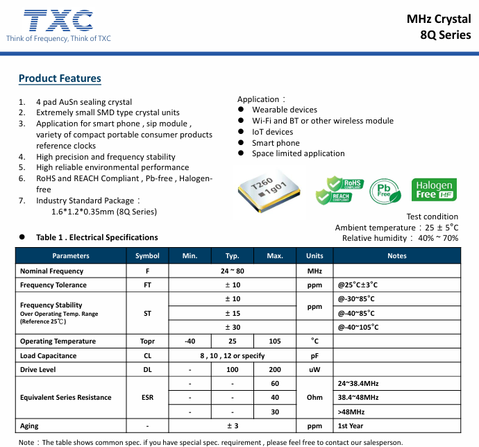 當智能手機流暢運行、可穿戴設備精準監(jiān)測、物聯(lián)網(wǎng)設備互聯(lián)互通時,很少有人會留意那顆藏于機身深處的“時間心臟”臺灣晶技晶振.臺灣TXC晶技推出的8Q26000008晶振,以1.6*1.2*0.35mm的方寸之軀,承載著高精度頻率控制的核心使命,堪稱小型化科技浪潮中的匠心典范.