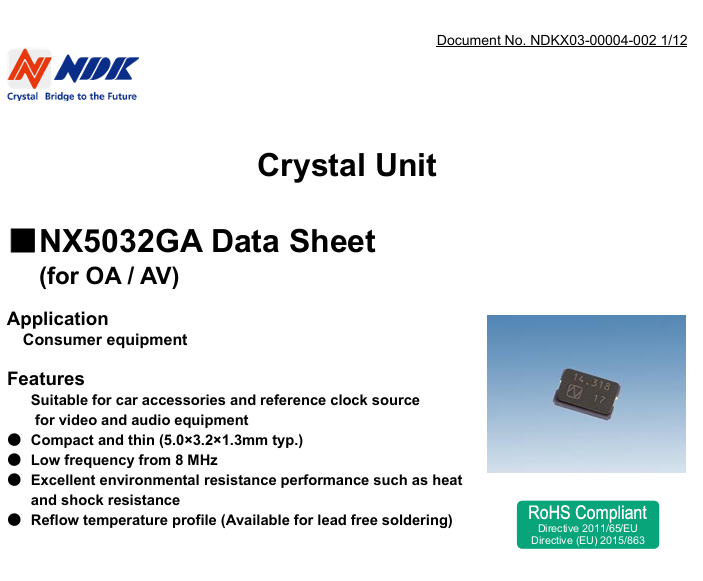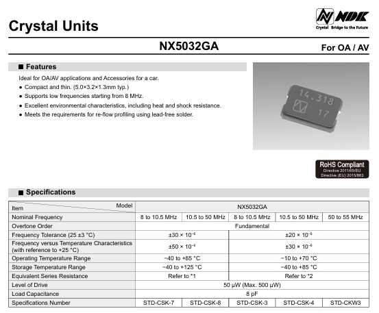 更多>>NX5032GA-8MHZ-STD-CSK-7陶瓷5032兩腳晶振NDK